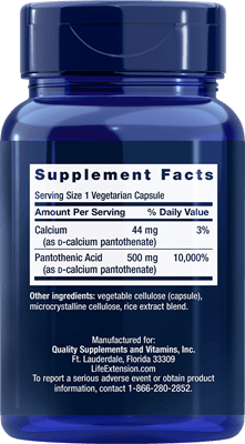 Pantothenic acid (vitamin B5) is critical for human health. As a component of a ubiquitous cofactor called coenzyme A, it plays a central role in lipid, amino acid and glucose metabolism, and mitochondrial energy production, as well as in the synthesis of hemoglobin, neurotransmitters, cholesterol. steroid hormones, and other proteins and lipids.
