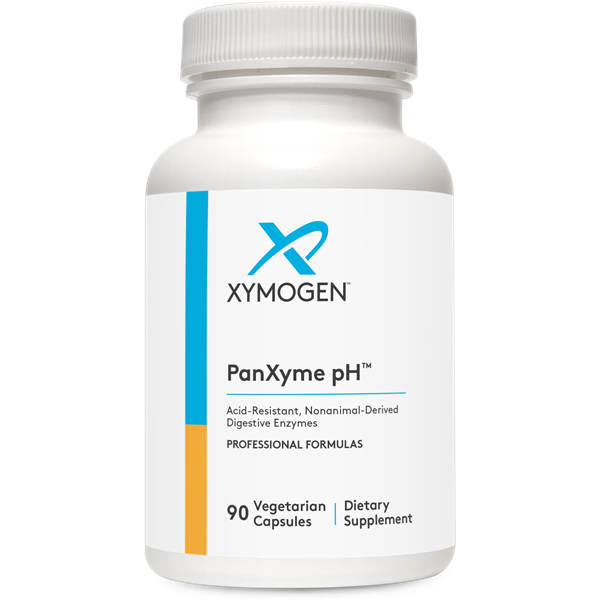 PanXyme pH™ is a blend of digestive enzymes derived from the fermentation action of fungi such as Aspergillus niger and Rhizopus niveus, microorganisms safely used in fermenting foods, including cheese, soy sauce, and yogurt. These non-animal derived enzymes support the assimilation of nutrients in foods and the digestion of proteins, carbohydrates, fats, and vegetable matter. Clinical trials suggest that PanXyme pH is effective across a broad spectrum of pH ranges.*