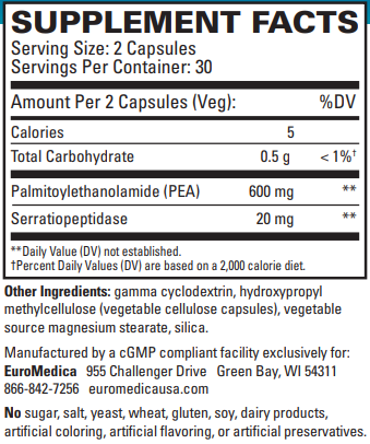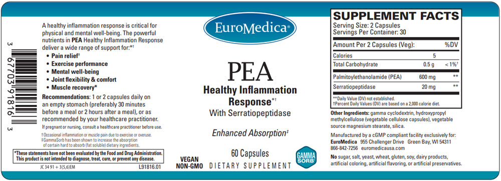 PEA (palmitoylethanolamide) is well known for its support of pain relief, healthy mood, cognitive strength, mobility, and exercise recovery.*†