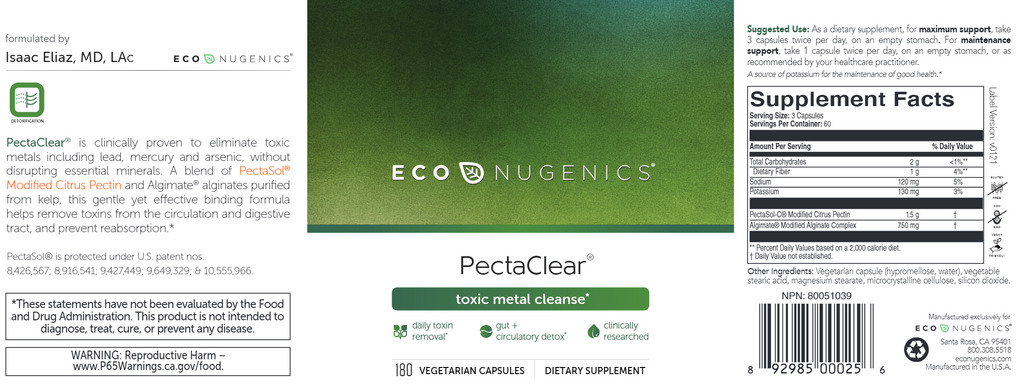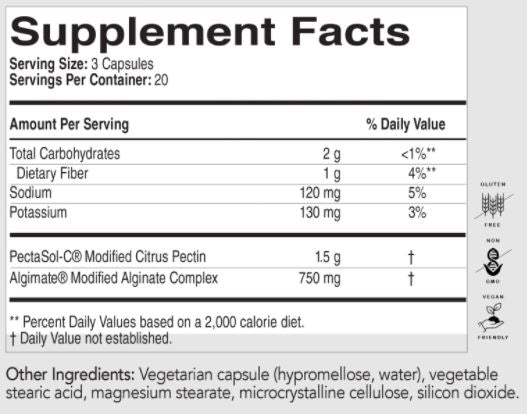 PectaClear is a clinically proven detox formula containing PectaSol and alginates from kelp. This gentle yet effective blend works safely to bind and eliminate toxins and heavy metals—including lead, mercury, arsenic, and radioactive ions—without disrupting essential minerals.*