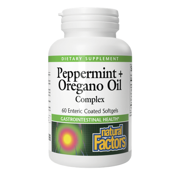 Peppermint + Oregano Oil Complex contains extracts of peppermint, oregano and caraway seed in an enteric-coated softgel. The enteric coating allows the formula to be released into the small intestine and colon instead of the stomach, resulting in improved absorption and utilization by the body.