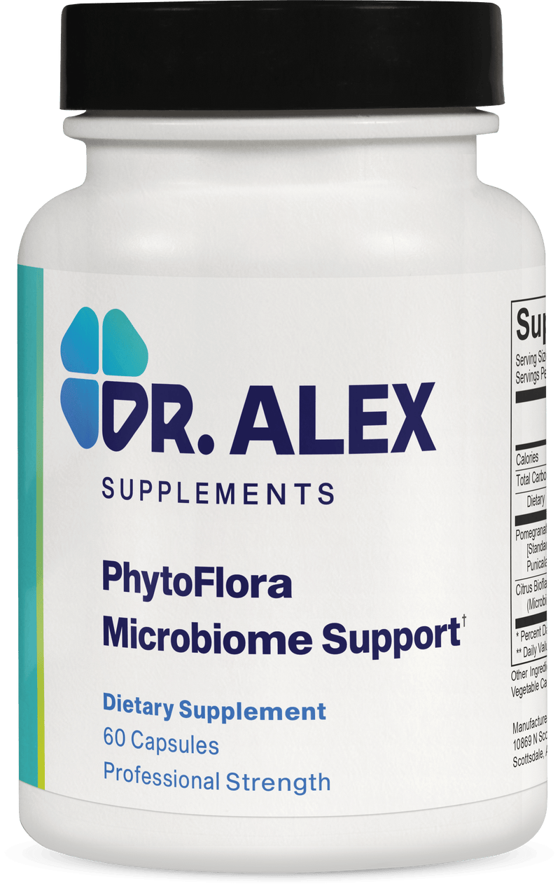 PhytoFlora Microbiome Support is a plant nutrient prebiotic formula that provides flavonoid-rich polyphenols from pomegranate and citrus to promote a healthy gut microbiota composition while protecting the gut mucosal barrier and enhancing gut immunity.
