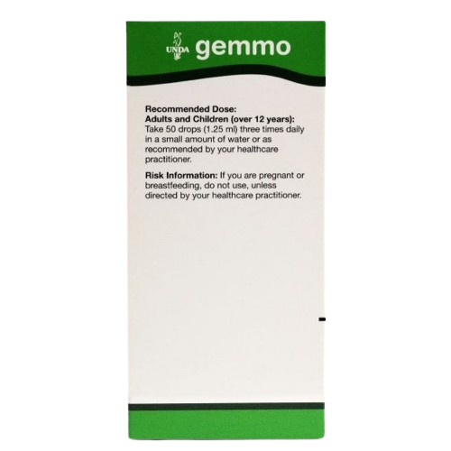 Recommended Dose: Adults and Children (over 12 years): Take 50 drops (1.25 ml) three times daily in a small amount of water, or as recommended by your healthcare practitioner. Gemmotherapy Remedy to be used on the advice of your healthcare practitioner.