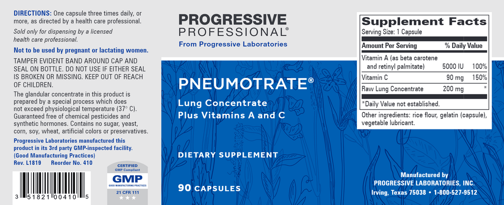 This product contains those vitamins beneficial to membrane tissue with growth and repair factor for the lungs.
