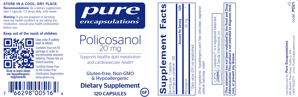 Policosanol promotes healthy lipid metabolism, platelet function and antioxidant protection for support of cardiovascular function.