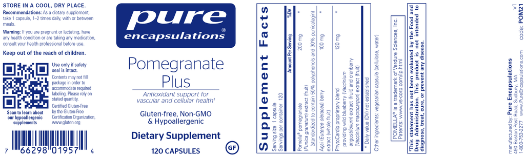 Pomegranate Plus is a pomegranate extract combined with other fruit extracts to provide exceptional vascular and cellular support.