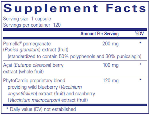Offers the combined nutritional power of pomegranate and other fruit extracts to promote vascular and cellular health.