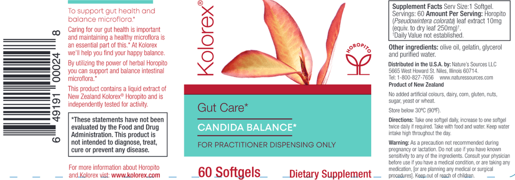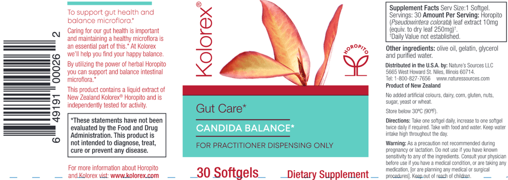 Processed foods, beverages and stress sometimes affect the microbial balance in our intestines. Kolorex® Practitioner Candida Care helps maintain balanced intestinal micro-flora, using a patented extract of New Zealand RedLeaf Horopito™.*