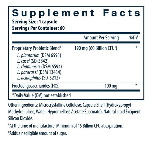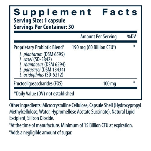 Immune and gut health benefits: Did you know that 80% of your immune system is in your gut? Prioritizing your microbial health not only helps give your immune system the support it needs to keep you feeling great, it also helps support digestion and nutrient absorption and improves bowel regularity.* Prebiotic + Probiotic 60 Billion CFU helps replenish beneficial bacteria to support digestive and immune health.*