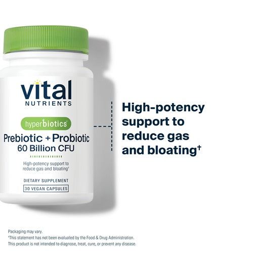 Get relief for gas and bloating while supporting digestion and immune health with our high-potency prebiotic + probiotic formula. Hyperbiotics Prebiotic + Probiotic 60 Billion CFU includes 60 billion colony-forming units (CFU) from five targeted probiotic strains, including L. plantarum (DSM 6595), which has been clinically studied to support immune and upper respiratory health.* This uniquely designed formula also contains 100mg of prebiotic fructooligosaccharides (FOS), which help feed the probiotics for increased benefits.