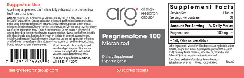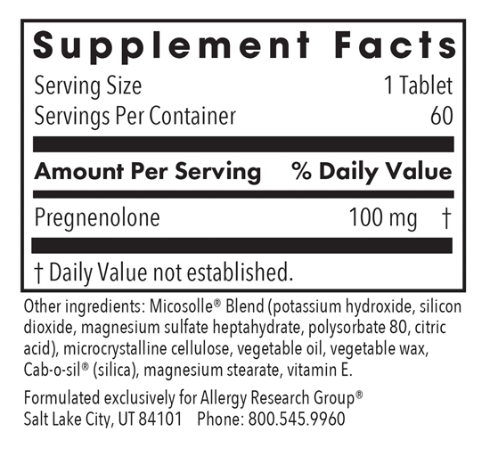 WARNING: NOT FOR USE BY INDIVIDUALS UNDER THE AGE OF 18 YEARS. DO NOT USE IF PREGNANT OR NURSING. Consult a physician or licensed qualified health care professional before using this product if you have, or have a family history of, prostate cancer, prostate enlargement, heart disease, low "good" cholesterol (HDL), or if you are using any other dietary supplement, prescription drug, or over-the-counter drug. Do not exceed recommended serving. Exceeding recommended serving may cause serious adverse health effects. Possible side effects include acne, hair loss, hair growth on the face (in women), aggressiveness, irritability, and increased levels of estrogen. Discontinue use and call a physician or licensed qualified health care professional immediately if you experience rapid heartbeat, dizziness, blurred vision, or other similar symptoms. KEEP OUT OF REACH OF CHILDREN. Pregnenolone may affect levels of other hormones, such as progesterone, estrogen, testosterone, and/or DHEA. Do not take this product if you have a history of seizures. Do not take this product if you have breast cancer, prostate cancer, or other hormone-sensitive diseases. To report any adverse events call 1-800-332-1088.