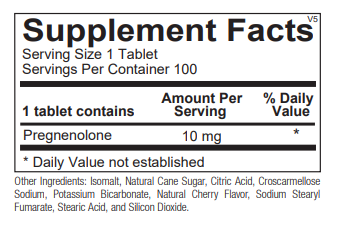 Pregnenolone plays a key role in hormonal balance as a key precursor to cortisol, DHEA and progesterone, and helps to maintain balance in the body’s stress response system. In addition, pregnenolone has been shown to support a balanced mood and promote cognitive health by modulating the transmission of messages between neurons, influencing learning and memory processes. Since there is strong evidence that pregnenolone levels diminish with advancing age, restoring these levels may also help support overall brain function and sense of well-being. Each capsule of the Pregnenolone formula includes 10 mg of pregnenolone in a scored, quick-dissolve tablet, allowing for incremental dosing as needed.
