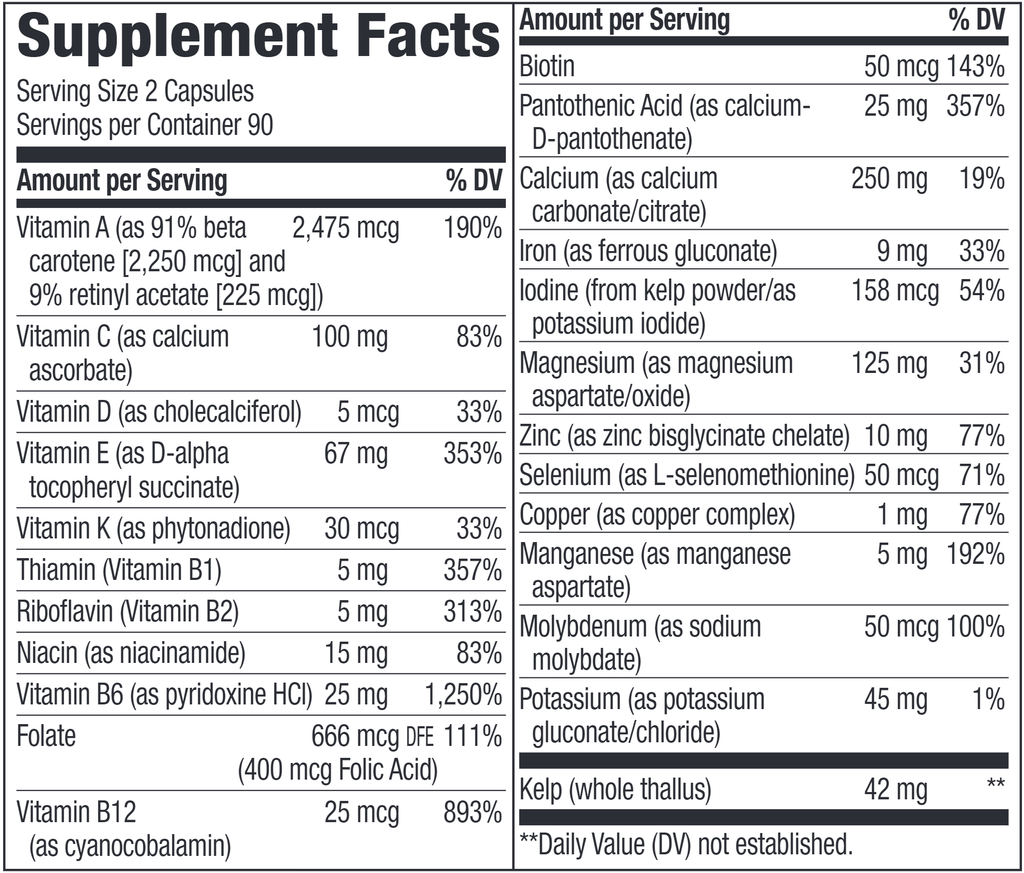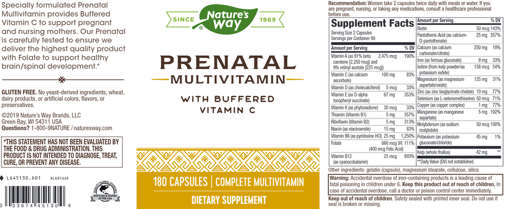 Specially formulated prenatal multivitamin with buffered vitamin C to support pregnant and nursing mothers.* With folate for healthy brain and spinal development.*