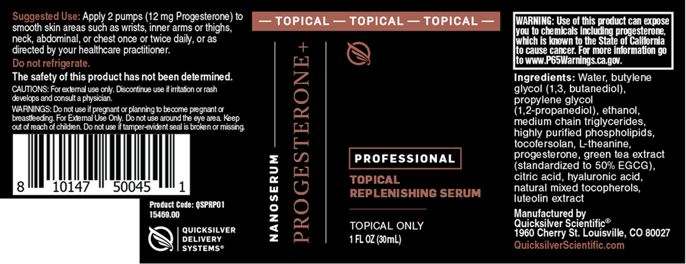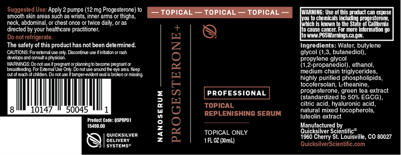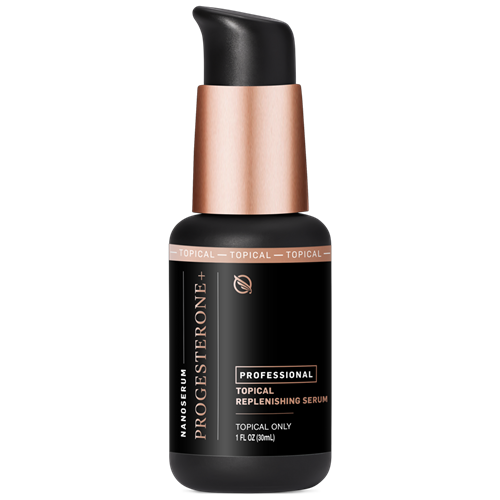 Nanoemulsified topical serum using 12mg of progesterone derived from the plant sterol di-osgenin, a natural compound used to synthesize bioidentical progesterone.