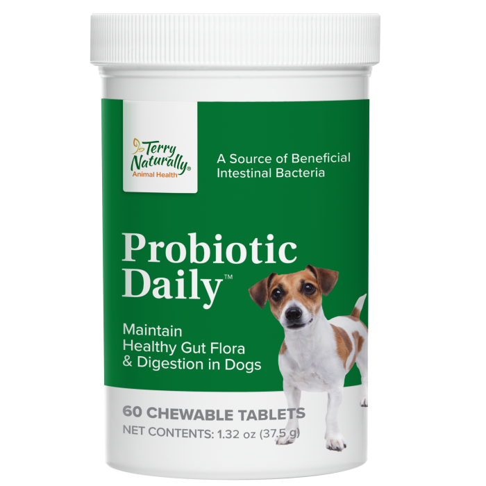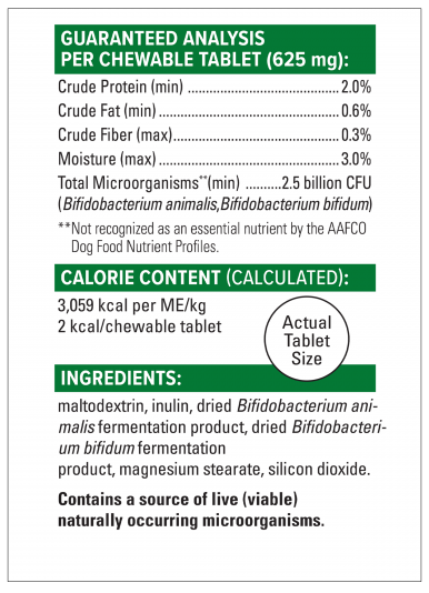 Probiotic Daily™ assists in the digestion and absorption of essential nutrients and promotes intestinal well-being—good news for you and your dog! Help support your dog’s proper digestion and bowel health with this trusted source of beneficial intestinal bacteria, the answer to help maintain proper gut pH and flora.