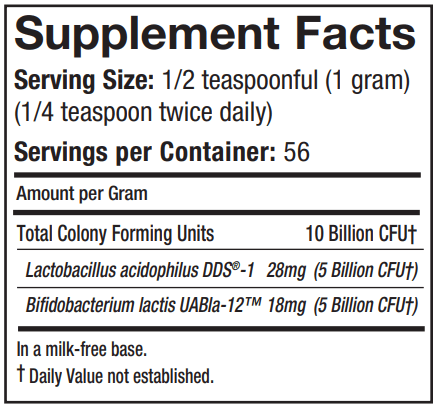 We have also added Bifidobacterium lactis (UABla-12™) to complement the renowned DDS®-1. This strain provides more elaborate research and stability.