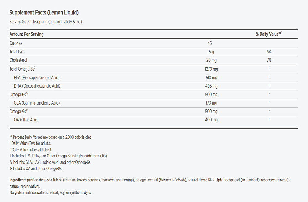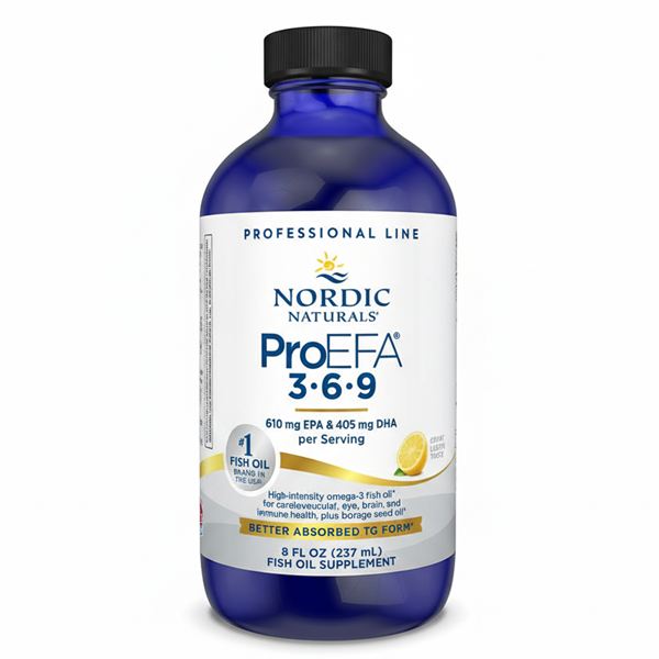 ProEFA®-3⋅6⋅9 liquid is a non-concentrated formula that blends EPA and DHA from cold water fish with GLA from borage oil. This omega-rich blend supports cardiovascular health, brain function, positive mood, as well as healthy joints, hair, skin, and nails.*