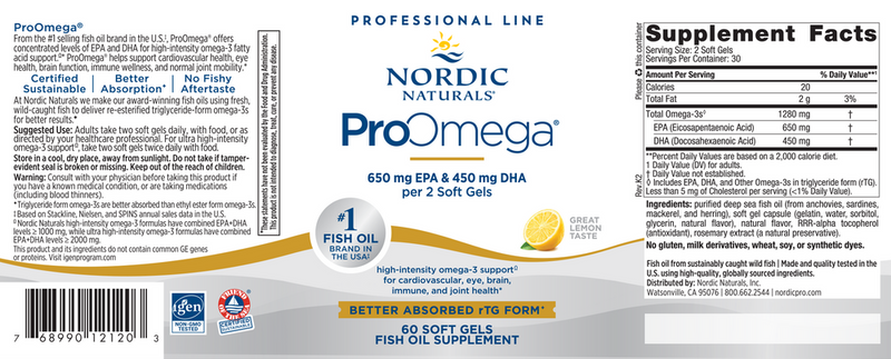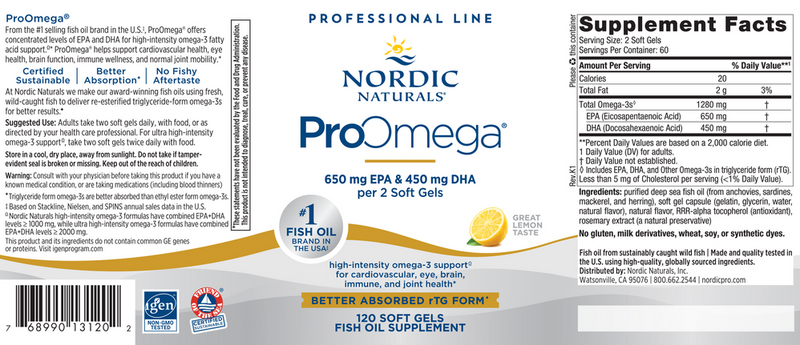 ProOmega® provides exceptionally high levels of the omega-3 fats EPA and DHA. It is ideal for people wanting high-intensity, therapeutic support in a smaller serving. Our most popular concentrate, ProOmega has been shown by original research to support healthy glucose levels, healthy lipid levels in professional athletes, bronchial health, and the body's ability to respond to stress in a healthy way.*