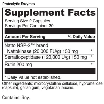 Healthy circulation is crucial for all of the body's systems, providing adequate oxygenation and nutrition to tissues and major organs. Nattokinase, produced from Natto, is an extract from Japanese fermented soy food that supports healthy veins, capillaries, and blood flow. Nattokinase and Serratiopeptidase are both fibrinolytic enzymes that break down fibrin in the blood. Fibrin is a protein by-product of blood coagulation caused by toxins, normal inflammation and injuries. The enzymes digest non-living tissue such as blood clots, and mucus.