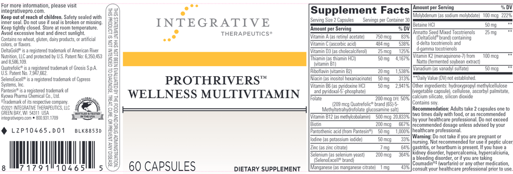 ProThrivers Wellness Multivitamin is a combination of nutrients that support the health of thrivers.* A unique and important aspect of this formula is what it does not contain. ProThrivers Wellness Multivitamin does not contain beta-carotene, alpha-tocopherol, copper, or boron.