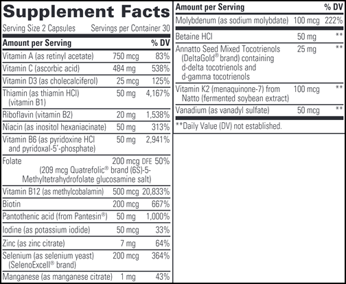 This formulation includes active forms of nutrients to support overall health and energy metabolism.* Studies indicate that thrivers benefit from taking a daily multivitamin and minerals supplement.1,2