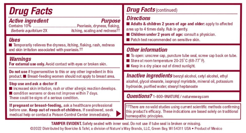 Psoriaflora® cream contains a 10% of Berberis aquifolium 2X tincture, which provides tenporary relief from scaling, dry skin, redness, and itching associated with psoriasis.†† Unlike coal or tar based treatments, it is pleasant to use and will not stain skin or clothing. Psoriaflora contains no salicylic acid, corticosteroids or synthetic medicines.