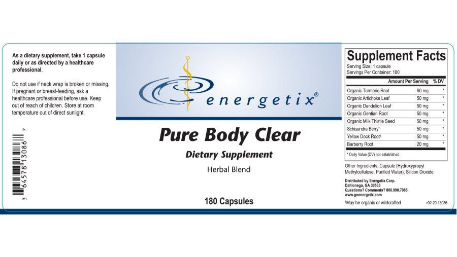 Pure Body Clear is an herbal blend formulated as gentle support for the primary elimination pathways. This blend helps maintain normal function of the body’s filtration system including normal liver, kidney, and gallbladder function.