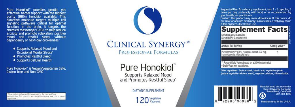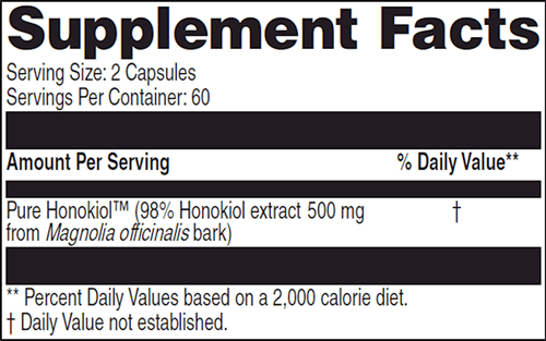 Pure Honokiol provides gentle, yet effective, herbal support with the highest purity (98%) honokiol available. This bioactive molecule targets multiple cell signaling pathways critical for optimal function. In the brain, it targets the neurotransmitter receptor GABAA to help support stress response and promote relaxation, positive mood and restful sleep, without dependency or next-day drowsiness.
