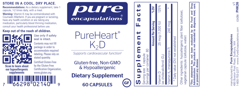 PureHeart® K2D helps maintain healthy calcium balance in vascular tissue for optimal cardiovascular function. PureHeart® K2D targets vascular tissue to support healthy arterial blood flow and vascular elasticity.