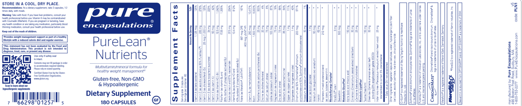 PureLean® Nutrients promotes healthy weight management by supporting healthy glucose metabolism and lipid utilization. PureLean® Nutrients also supports healthy lipid antioxidant protection and protein metabolism.