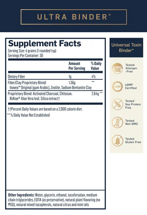 Ultra Binder: Mix 1 teaspoon into 8 ounces of water once daily or as directed by healthcare professional. Take 30 minutes before or 2 hours after meals or medications.