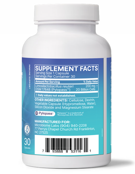 PyloGuard™ contains the patented probiotic strain Lactobacillus reuteri DSM17648. L. reuteri DSM17648 specifically binds to H. pylori in the stomach and supports overall digestive health*.