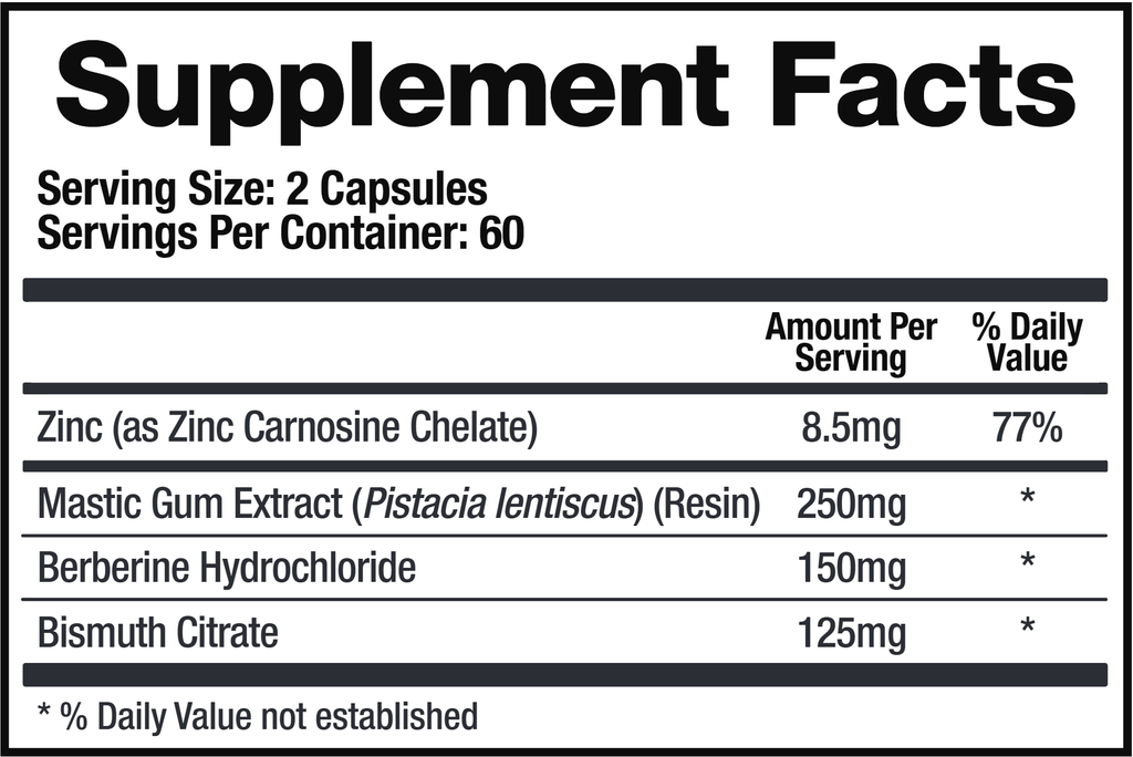 Zinc-Carnosine is a patented complex that supports the health of the GI tract and is commonly used to support the stomach.