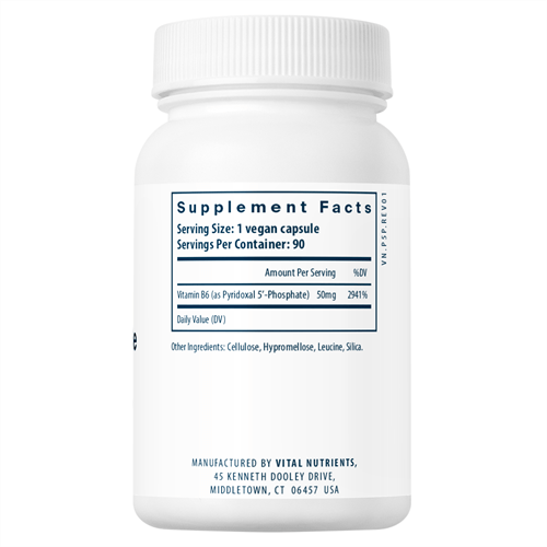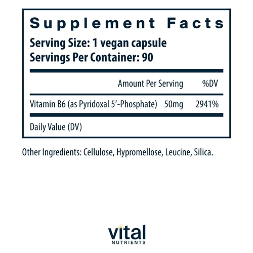 Pyridoxal-5 Phosphate (P5P or activated vitamin B6) is required to metabolize proteins, carbohydrates, and fats and is important in the production of antibodies and red blood cells.* It also helps regulate bodily fluids and supports healthy nerve and musculoskeletal function.* P5P helps maintain homocysteine levels that are already in the normal range and may relieve mild mood changes, cramps, and edema associated with the menstrual cycle.*