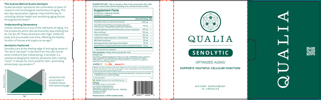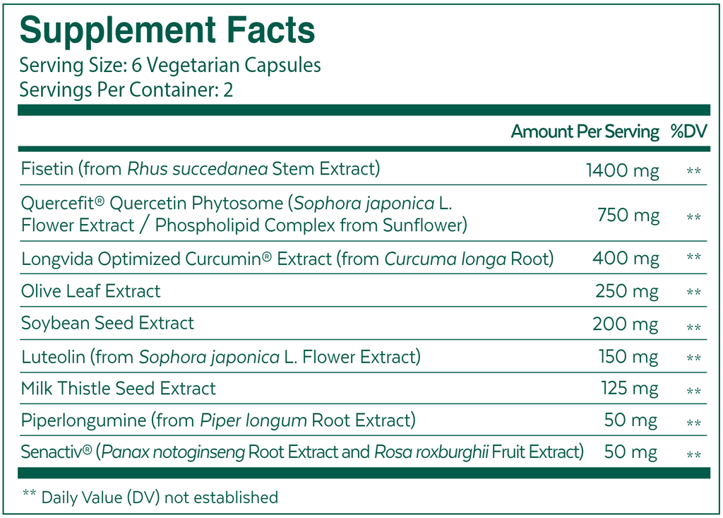 Qualia Senolytic represents the culmination of years of research into the biological mechanisms of aging. This two-day rejuvenation regimen may hold the key to unlocking cellular health and revitalizing aging tissues throughout the body. Qualia Senolytic is designed to: