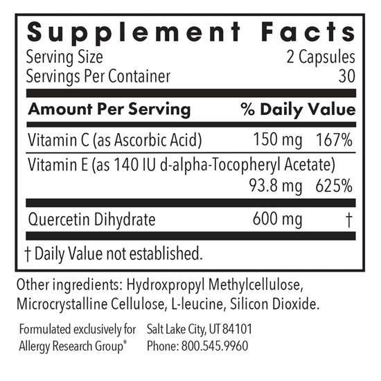 High quality quercetin, derived from a non-citrus plant source, stabilized with additional antioxidants so as not to auto-oxidize (degrade spontaneously).*