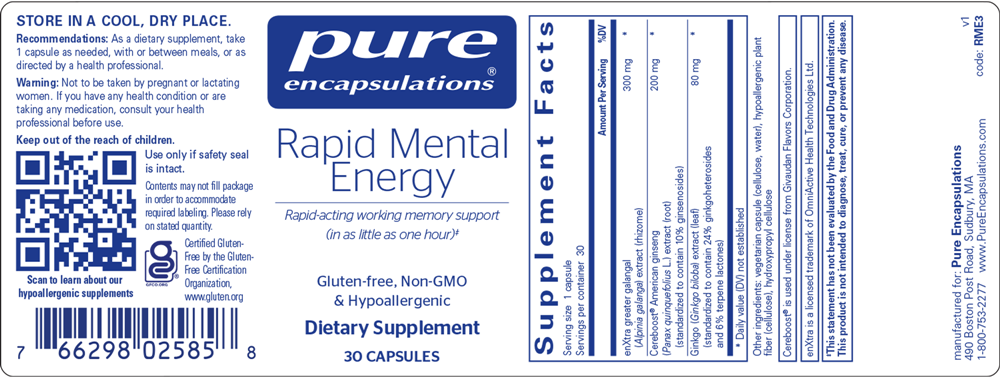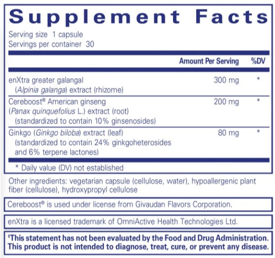 Rapid Mental Energy combines two clinically studied extracts, Alpinia galagna (enXtra) and American ginseng (Cereboost®), to support alertness and sharpen working memory.1-5 While enXtra supports alertness, Cereboost® provides fast-acting support for acute visuospatial and verbal short-term (working) memory.