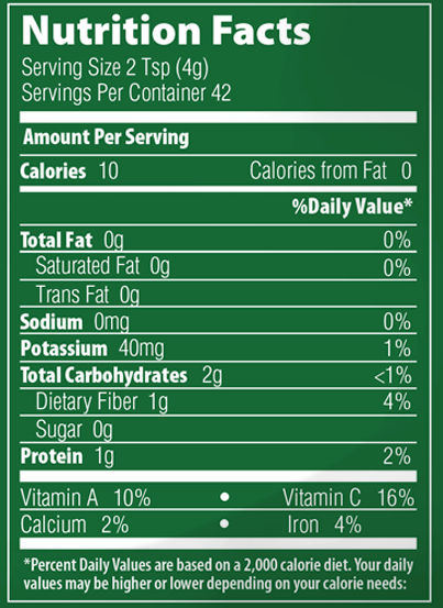 Does not contain: Gluten, Preservatives, Refined Sugar, Sugar Alcohols, Animal Products, Fillers or Additives, Artificial Ingredients.