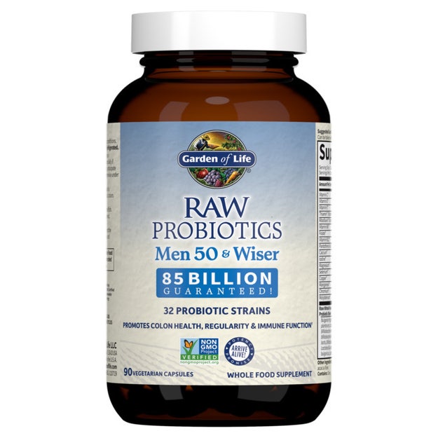 Raw Probiotics Men 50 & Wiser—a whole food probiotic with more strains and a higher CFU count than most.