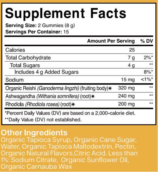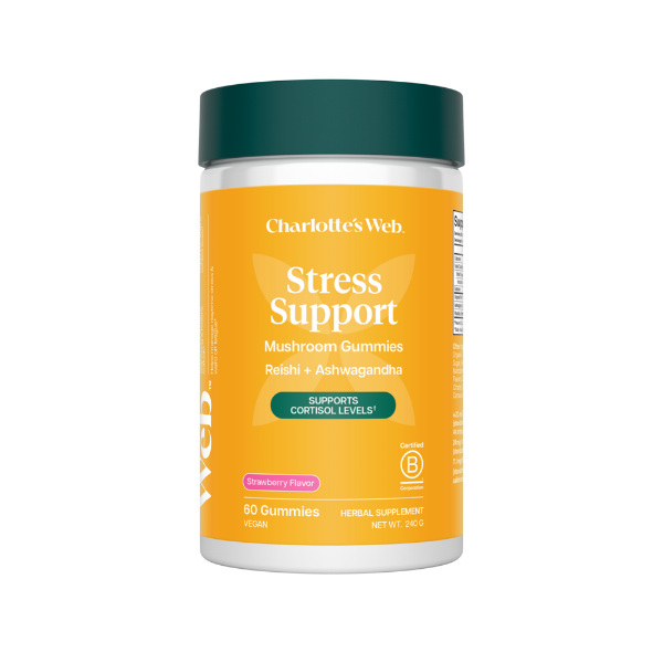 Charlotte’s Web™ Stress Support Gummies are formulated with organic Reishi (Ganoderma lingzhi) fruiting body 16:1 extract to provide a dry weight equivalent of 320mg of fresh Reishi mushroom per two-gummy serving as well as 240mg Ashwagandha (Withania somnifera) root and 200mg Rhodiola (Rhodiola rosea) root. This blend of adaptogens and at efficacious potencies will help support healthy cortisol levels and daily stress response.* Superior quality is guaranteed through 3rd-party testing for purity and potency as well as being certified kosher. Patients and practitioners alike will enjoy the satisfying Strawberry fruit flavor and that the formulas are gluten-free, CBD-free, vegan, and non-GMO.
