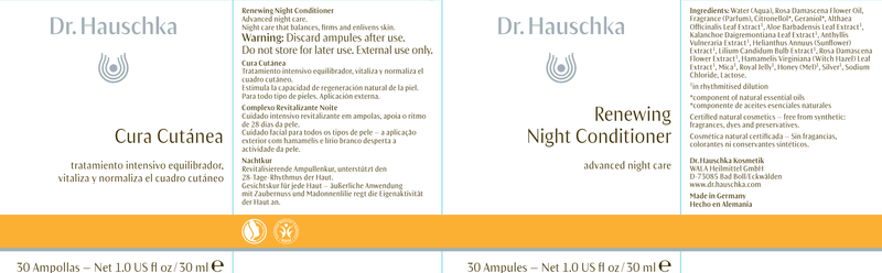 Skin cells are renewed every 28 days. Mirroring this same regenerative rhythm, Renewing Night Conditioner should be used for 28 days in place of a toner. Apply nightly after evening cleansing. Twist off tab at top of 1-2 ampules and empty contents into cupped hand. Press gently and evenly to skin until all Conditioner is absorbed – include eyes, lips, earlobes, neck and décolleté.