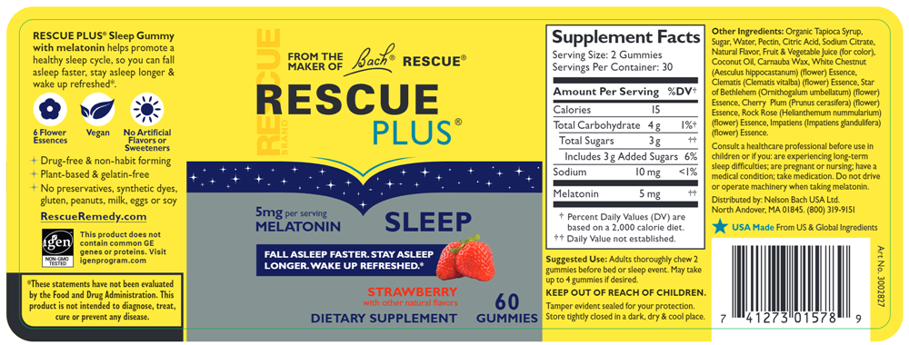 RESCUE PLUS™ Sleep Gummy with Melatonin helps you to fall asleep faster, stay asleep longer and wake up refreshed*.