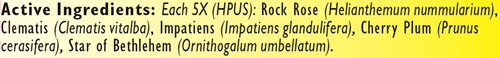 HPUS 5x dilution of Helianthemum nummularium, Clematis vitalba, Impatiens glandulifera, Prunus cerasifera, Ornithogalum umbellatum.