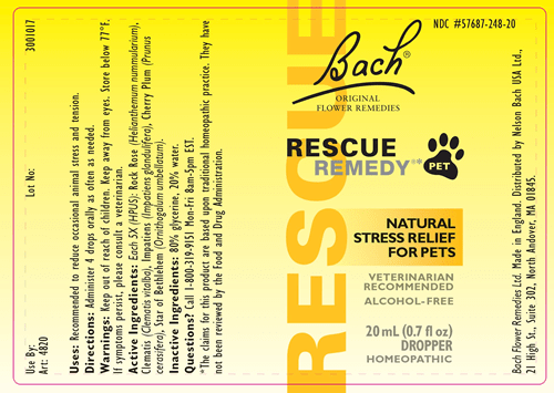 Rescue Remedy is a combination remedy for crisis use. The full system of 38 Bach Original Flower Remedies can help with any kind of emotional imbalance. If symptoms persist, please consult a veterinarian.