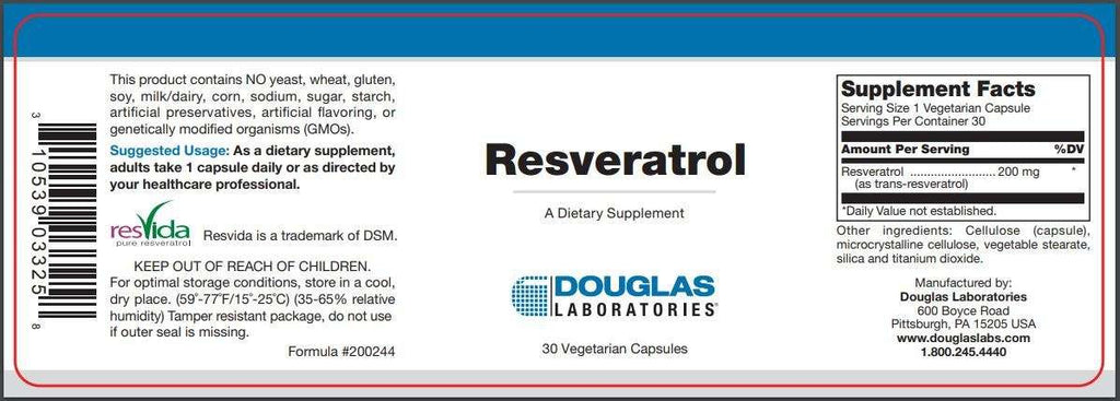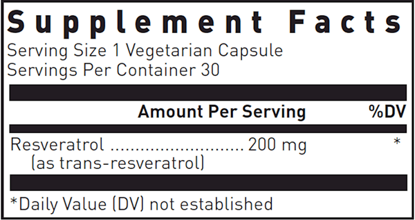 Resveratrol, provided by Douglas Laboratories, supplies 200 mg of pure, Resvida™ trans-resveratrol in vegetarian capsules.