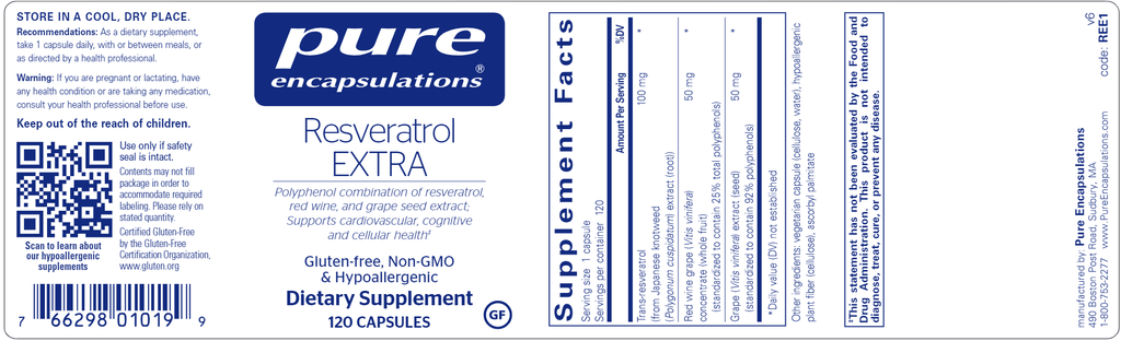 Resveratrol EXTRA combines resveratrol with polyphenols from red wine and grape seed for healthy cellular and cardiovascular function. Resveratrol EXTRA promotes overall health, metabolic function and longevity.