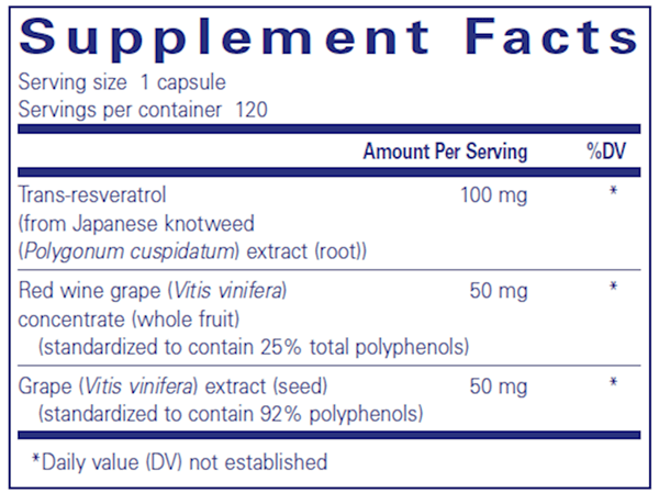 Combines resveratrol with polyphenols from red wine and grape seed for enhanced support of healthy cellular and cardiovascular function