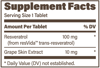 RESVERATROL 100mg features ResVida® Grape Skin Extract, a concentrated form of highly bioavailable, high-purity (99%) trans-resveratrol. Resveratrol is a polyphenol found in small amounts in foods: most notably in red wine grapes.