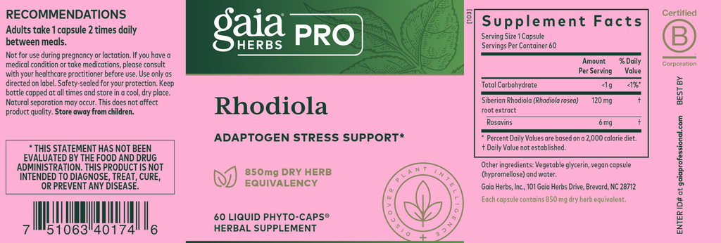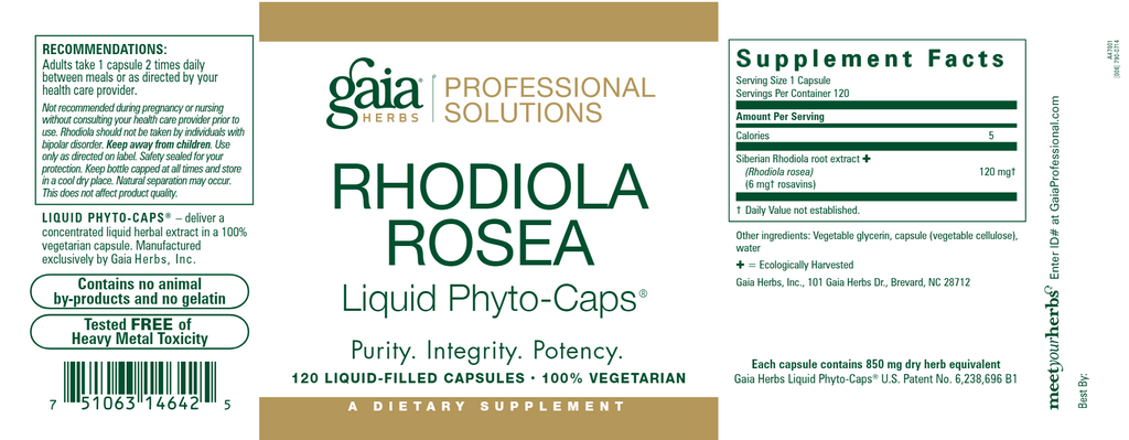 Rhodiola is a potent herb that is thought to help the body adapt to stress in a healthy way.* Ecologically harvested from the pristine alpine meadows of Siberia, Gaia Herbs’ Rhodiola optimizes energy levels while promoting a healthy mood.* Each serving of Rhodiola Liquid Phyto-caps® is concentrated to contain 6 mg of active Rosavins, delivering guaranteed quality and potency.