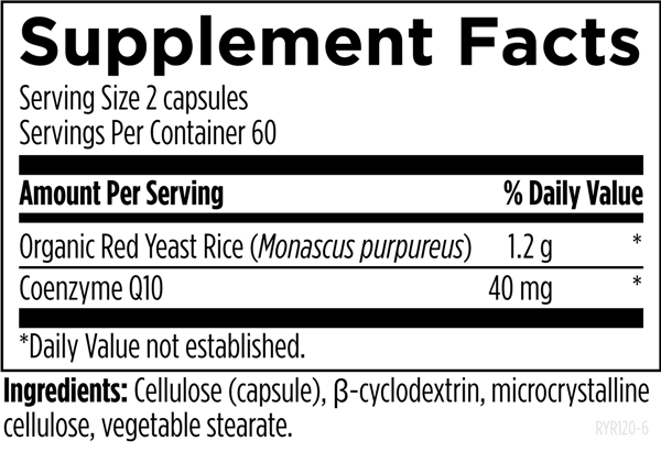 RYR Synergy™ provides support for maintaining healthy lipids that are already in the normal range.* It features the same USDA-certified organic red yeast rice as found in our organic Red Yeast Rice product with added coenzyme Q10 (CoQ10).